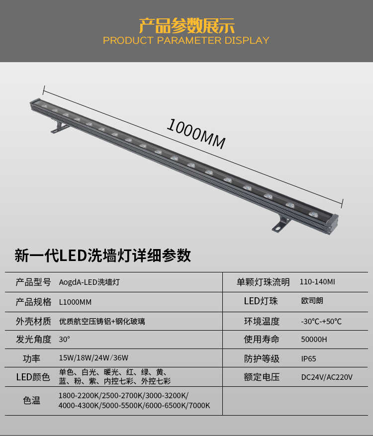 24W:長度為1米;36W:長度為1米;